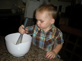 Every time I'm cooking in the kitchen Lincoln always asks to "look look" so I usually will pull up a chair for him to kneel on and watch me cook. Well, today I let him get a little more hands on with dinner and he knelt down on the chair and stirred for about 20 min. I couldn't get a picture of him smiling because I couldn't get him look away from what he was doing.